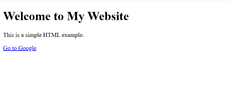 A simple web page showing a heading, a paragraph, and a clickable link.